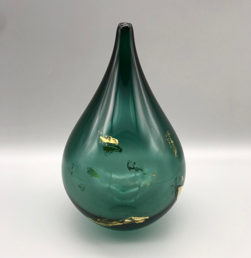 Description Small Dew Drop in steel-green with 23.5 carat gold leaf detailing Approx. 18cm tall Elin Isaksson Glass