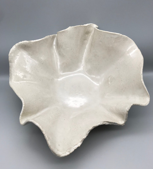 Large ceramic wavy fruit bowl in soft white